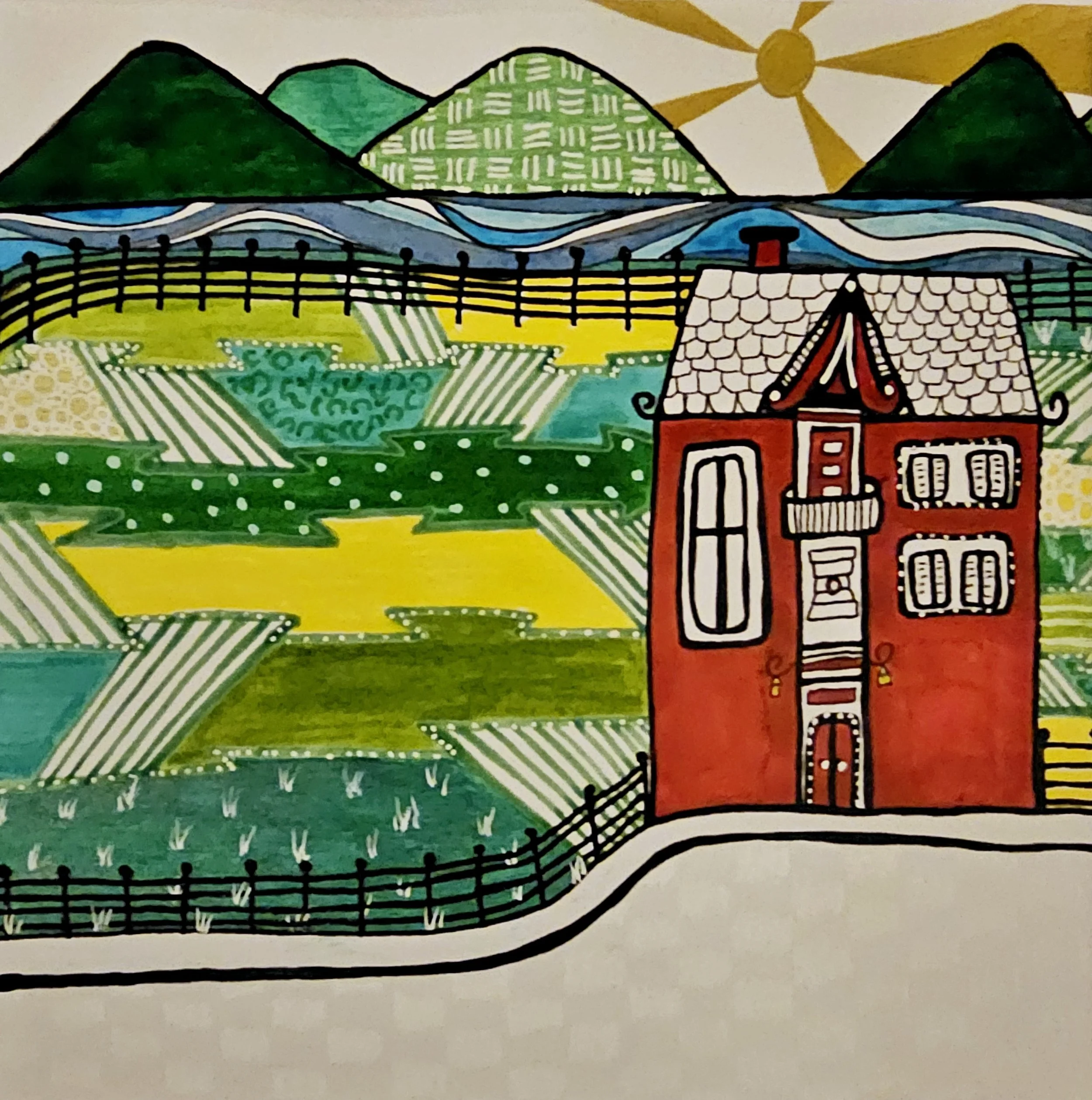 Acrylic Ink, Acrylic Paint, Book Pages, Fabric, Gel Pen