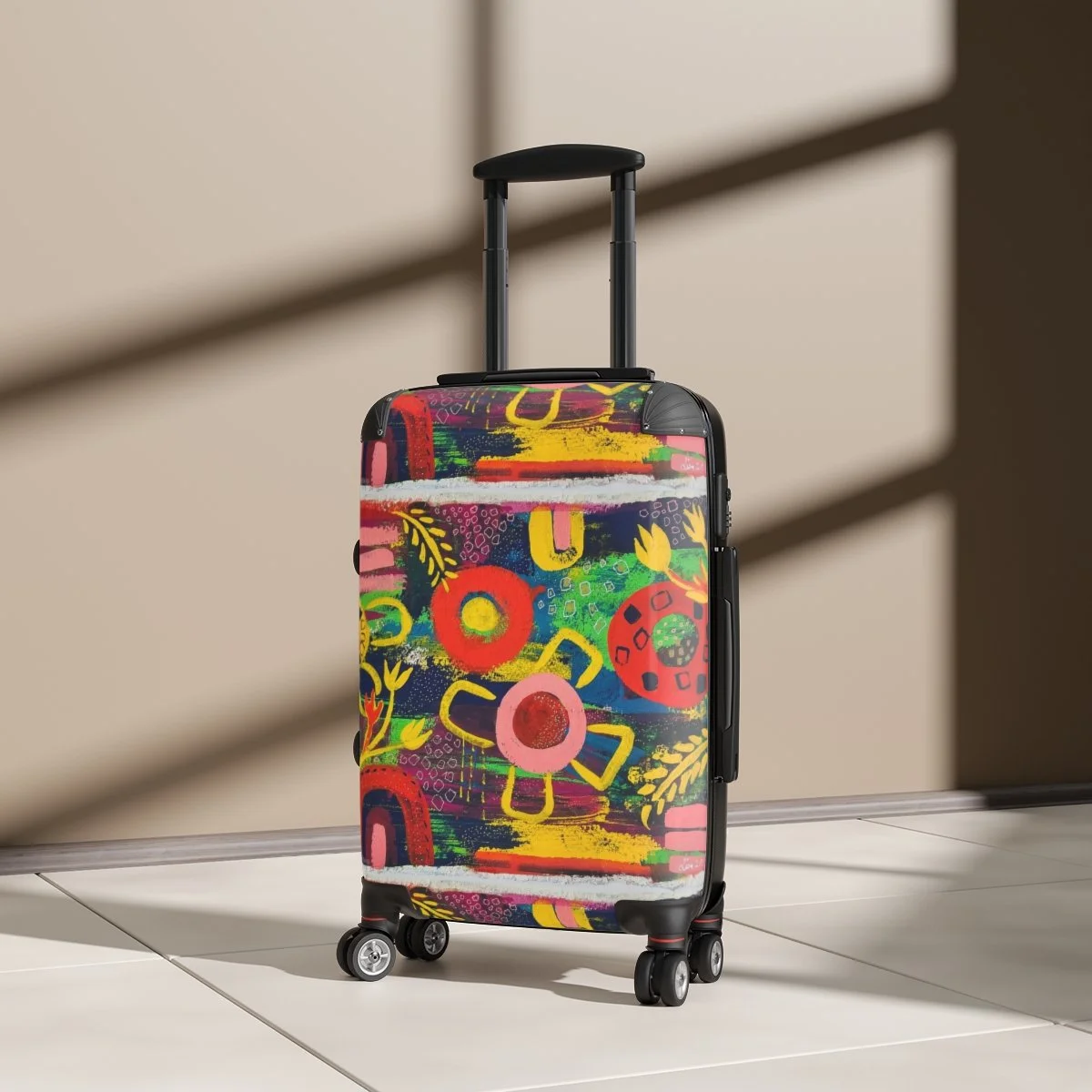 Please note: Your design is printed on a canvas that may slightly crease near the suitcase's edges.